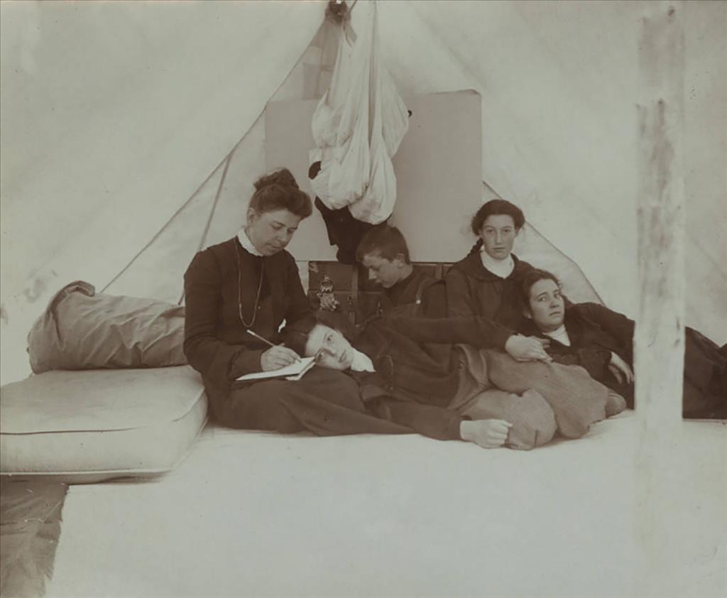 Abby Williams Hill, with her four children, on a plein air excursion to Yellowstone National Park (c. 1906)