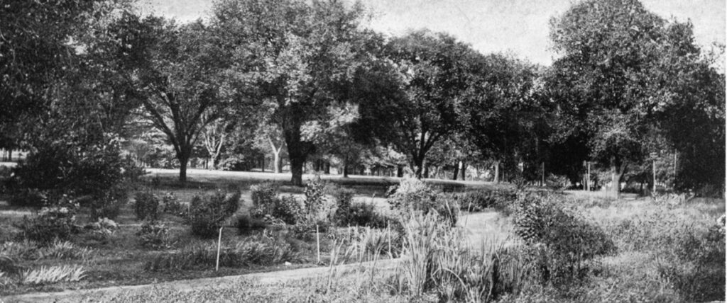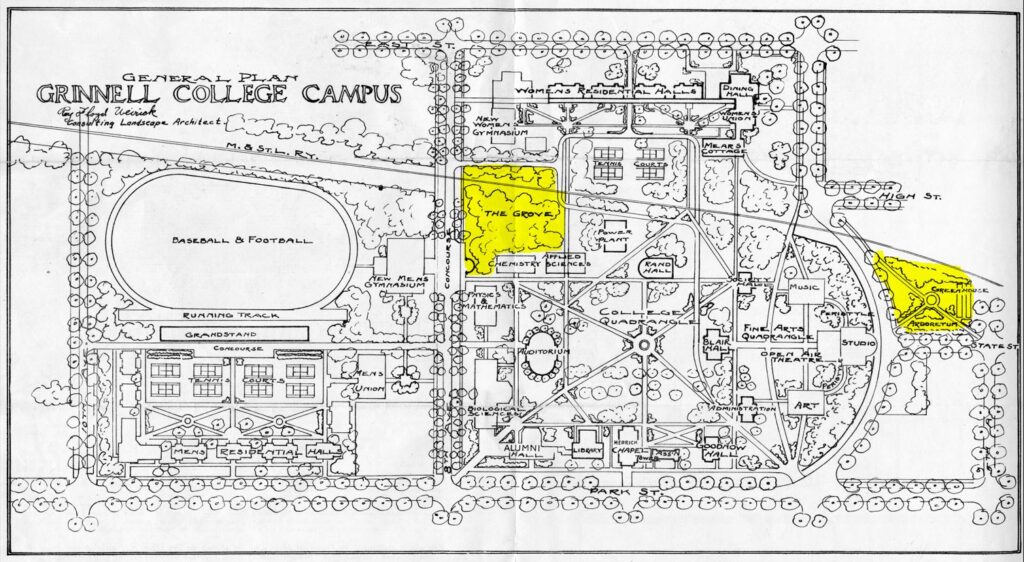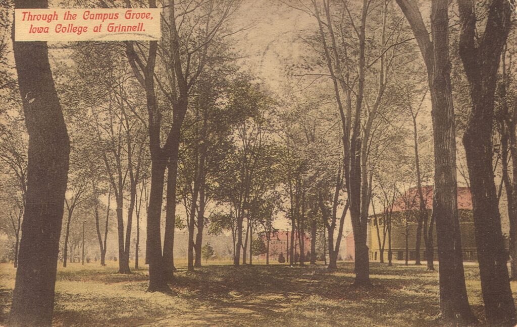 As Fall arrives, and leaves start to change color throughout the Midwest, it’s worth remembering some of the distinctive autumnal features of our campus landscape that have disappeared. One of those was “the Grove”— a parcel of the campus planted with trees that turned gold, crimson, and auburn each Fall (and is now home to the eastern half of the Noyes Science Center and its parking lot). The other space was the college’s arboretum and botanical gardens, located across Sixth Avenue, on the large plot of land that eventually became the home of St. Paul’s Episcopal church. In their heyday, both locations provided a calm retreat where members of the campus community could enjoy a bit of nature, particularly during the seasonal changes of Fall and Spring.