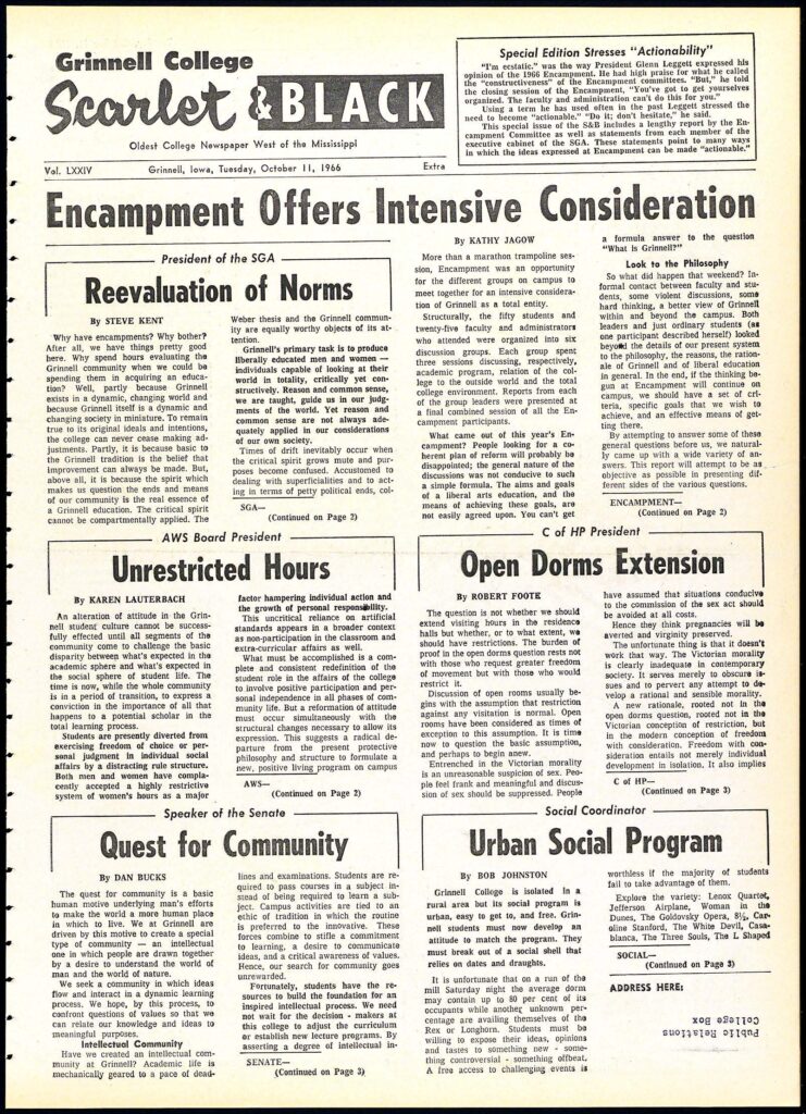 S&B 1966 coverage of encampments at Grinnell (click here for full sized pdf)