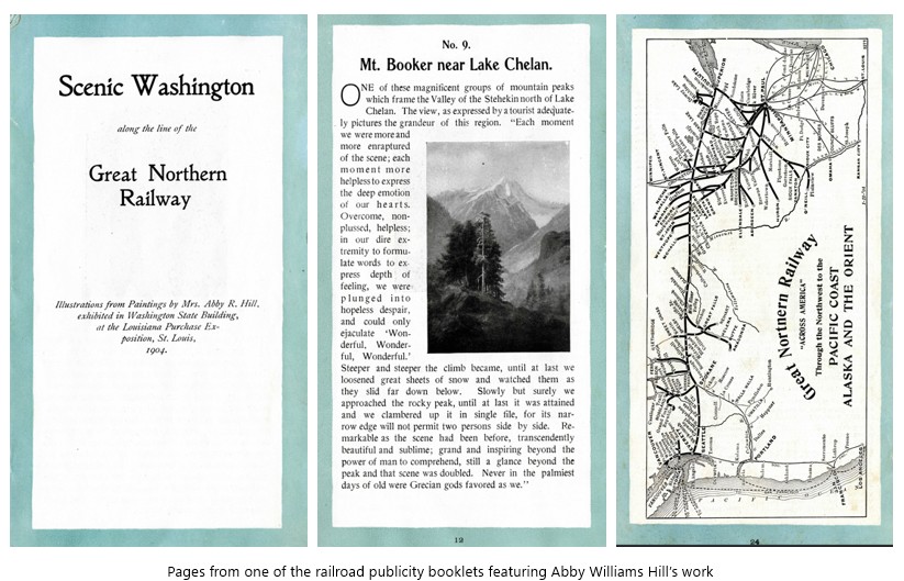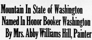 Hill was painting one particularly arresting peak, in the Cascades in 1903, when she was surprised to learn that no one knew of a name for that specific mountain. She wrote to the U.S. Geological Survey, which reported back (to their own surprise) that it was one of the few peaks that had not been assigned an official place name, a toponym, in their records. So they gave Hill the opportunity to choose its official name. She wrote back saying that she would like it to be named after Booker T. Washington, someone she admired deeply. Only a few years earlier, Hill had taken her four children on a whistle stop tour of Progressive America, visiting prominent reform sites such as Jane Addams’ Hull House, in Chicago, and Booker T. Washington’s Tuskegee Institute, in Alabama, where she spent a considerable amount of time in the company of both Booker and Margaret Murray Washington.